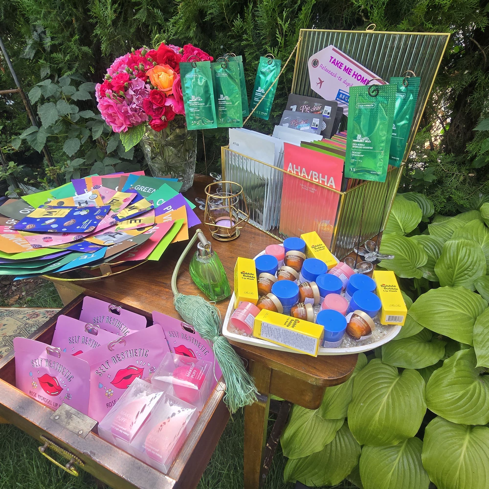 CADOU: Două coșuri de urgență pentru baie cu diverse aticole: plasturi, deodorant, ac cu ață, fixativ, agrafe de par, elastice de par, cremă de mâini, etc.