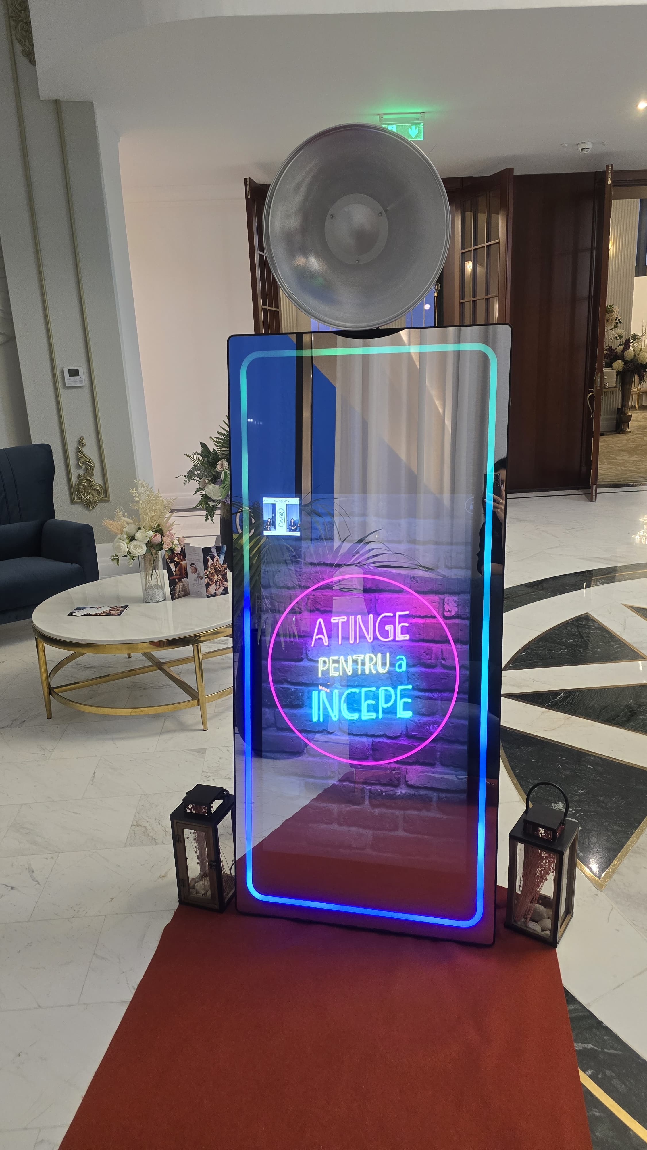 Planifici nunta, botezul, majoratul, balul bobocilor sau o aniversare specială și vrei să le oferi invitaților tăi amintiri unice? Oglinda foto de ultimă generație este soluția perfectă pentru un eveniment de neuitat! Cu un design elegant și versatil, oglinda noastră foto se integrează perfect în orice tematică, oferindu-le invitaților tăi nu doar poze, ci adevărate momente de distracție și creativitate.
